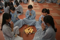 Buổi chiều cùng ngày, sau lễ quy y Tam Bảo, các bạn trẻ đã tham dự chương trình “Tìm kiếm tài năng Từ Xuyên” với gần 20 tiết mục ca múa, biểu diễn nhạc cụ, nhảy, mang lại không khí sôi động, xua tan những mệt mỏi sau những giờ học.