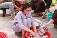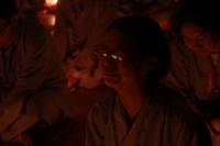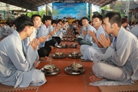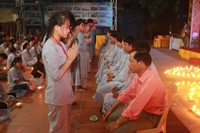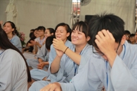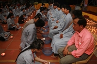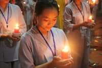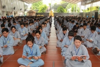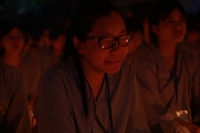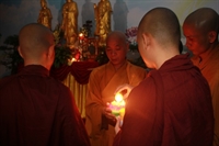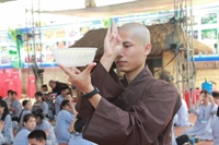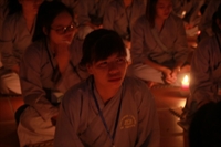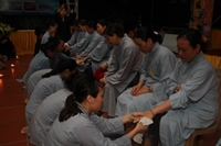 Mở đầu buổi lễ là những giây phút lắng lòng nghe chuông, tĩnh tọa. Tiếp đến, Thượng Tọa trụ trì đã đón nhận ánh sáng từ bàn Phật truyền trao cho Chư tôn đức rồi ra tỏa ra đại chúng. Xen kẽ trong buổi lễ là những chia sẻ vô cùng xúc động của SC.Hương Nhũ nói về tấm lòng của cha mẹ dành cho con cái. Những giọt nước mắt đã rơi, nhưng cái cúi đầu ăn năn, những lời sám hối vì những cử chỉ, hành động của con cái làm cha mẹ phiền lòng. Bao nỗi niềm chất chứa như vỡ òa hoà cùng nước mắt trước sự chứng minh của quý tôn đức. Trong lời đạo từ, Thượng tọa trụ trì đã nhắc lại về bốn ân và sự đền ơn. Những lời nhắc nhở của thầy làm cho các bạn thiện sinh thấm thía hơn ý nghĩa của đêm tri ân. Cuối buổi lễ, các bạn trẻ đã rửa chân và dâng trà trà tới một số quý phụ huynh về chùa dự lễ.