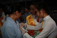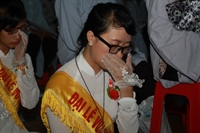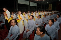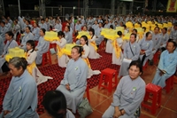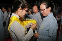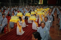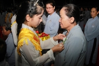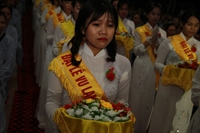 Chương trình buổi lễ gồm các phần: niêm hương bạch Phật, dâng lục cúng dường, nghi thức cài hoa hồng, cảm niệm mùa Vu Lan, tác bạch dâng y chư tôn đức chứng minh. Các nghi thức diễn ra trong không khí trang nghiêm, thành kính. Đặc biệt là phần nghi thức cài hoa hồng, những giọt nước mắt xúc động của các bạn trẻ khi nghe ý nghĩa của bông hồng cài áo. Phải chăng lúc này, khi đứng trong không khí ấm áp của buổi lễ và suy tưởng về Cha, về Mẹ, các bạn mới phần nào hối hận những lỗi lầm mình trót gây ra, làm cho Cha Mẹ phải buồn lòng. Hay đó là giọt nước mắt bất hạnh của những người con không còn được sống trong tình yêu thương của Cha của Mẹ! Những nỗi bất hạnh ấy, làm cho mỗi người có mặt trong buổi lễ hôm nay không khỏi hối hận, ngậm ngùi.