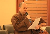 Thượng toạ Thích Đức Thiện trình bày Báo cáo tóm tắt Tổng kết công tác Phật sự năm 2021 của GHPGVN.