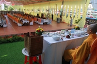 Sau lời đạo từ, dưới sự chứng minh chủ trì pháp hội của Thượng tọa trụ trì, toàn thể chư tôn thiền đức Tăng Ni đồng trì tụng Đại Bi thập chú và cử hành nghi lễ cúng dường; quý Đạo hữu Phật tử đã thành tâm dâng thực phẩm và những vật dụng lên chư Tăng, nhờ gương hạnh tu hành của chư Tăng mà quý Đạo hữu Phật tử thực hành được đời sống hướng thiện, an lạc.