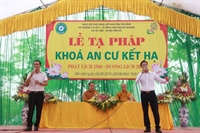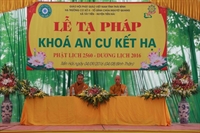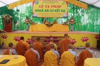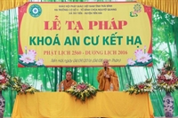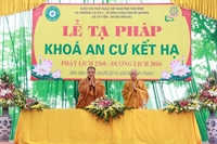 Đại chúng Tăng, Ni đã đảnh lễ bái tạ chư tôn đức chứng minh và dâng lời cảm tưởng sau ba tháng hạ an cư viên mãn. Thượng tọa đã hứa khả và ban đạo từ sách tấn an cư: “...Đối với mỗi vị Tỳ - khiêu, Tỳ - khiêu Ni, ba tháng an cư là thời gian để đại chúng cùng tụ họp lại, tu học, hành trì giới luật nhằm làm thanh tịnh thân tâm, trưởng dưỡng đạo hạnh, trau dồi ba môn Vô lậu học. Thay mặt cho BTS PG tỉnh, tôi gửi lời chúc mừng quý tôn đức đã hoàn thành chương trình tu học chung trong ba tháng do ban chỉ đạo an cư Phật giáo tỉnh đã thống nhất, chúc các vị có thêm một tuổi hạ, thành tựu Phật sự quan trọng trong năm. Tôi cũng mong muốn quý hành giả an cư luôn giữ được tinh thần lục hòa cộng trụ, sau khi mãn hạ, trở về trụ xứ, hướng dẫn Phật tử tu học đúng chính pháp, mở các khóa tu để nhân dân được lợi lạc, báo đền bốn ơn nặng, góp phần làm cho Phật giáo được xiển dương, GHPG tỉnh nhà được vững mạnh, góp phần ích đạo, lợi đời...”. Buổi lễ đã hoàn mãn vào hồi 10h00 cùng ngày.
