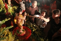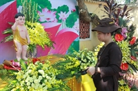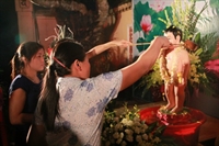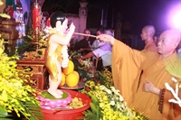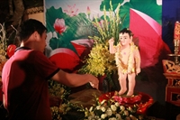 Phật tử trang nghiêm làm lễ tắm Phật