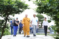 Chiều cùng ngày, ĐĐ.Thích Trúc Thái Minh cùng chư Tăng hướng dẫn phái đoàn thăm quan và giới thiệu về quang cảnh chùa Ba Vàng.