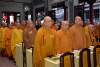Đại biểu cử hành nghi thức niệm Phật cầu gia hội, chào quốc kỳ, đạo kỳ và tưởng niệm nhị vị trưởng lão Hòa thượng Phó Pháp Chủ vừa viên tịch