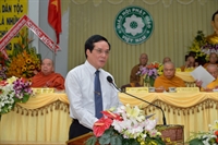 Thay mặt lãnh đạo các ban ngành Ông Lê Bá Trình – Phó UBTƯMTTQVN phát biểu chúc mừng đến Hội nghị. Ông tri ân và đánh giá cao những thành tựu Phật sự và công tác từ thiện xã hội mà Giáo hội đã đạt được trong năm 2016 vừa, từ đó thúc đẩy khối đại đoàn kết dân tộc, xây dựng và phát triển đất nước nói chung, GHPGVN nói riêng trong lòng dân tộc.