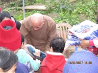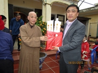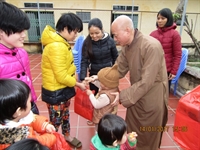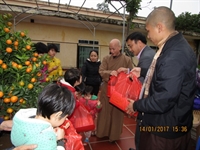 Thượng tọa trụ trì cùng chư Tăng, Phật tử đã có thời tụng kinh cầu an cho các gia đình, thăm hỏi và chúc Tết ban Giám đốc, cán bộ công nhân viên và các gia đình trong trung tâm, trao 80 suất quà, mỗi suất trị giá 200.000 ngàn đồng. Ngoài ra, quý Thầy còn trao 80 áo ấm do quý Thầy ở trường Trung cấp Phật học Nam Định gửi tặng. Thượng tọa khuyến tấn mọi người nên tu pháp môn Tịnh độ, tin sâu nguyện thiết để đạt đến giải thoát, an vui trong hiện tại và đời sau.