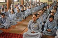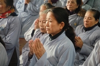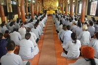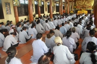 Phật tử Ngô Thị Thảo, thay mặt cho ban tổ chức đạo tràng đọc báo cáo tổng kết, nêu rõ đặc điểm, tình hình; các hoạt động tu tập, Phật sự, từ thiện đã làm trong năm qua. Theo đó, trong năm Bính Thân, đạo tràng đã duy trì các khóa tu Tịnh độ bốn ngày/tháng ngày, khóa tu dành cho người khuyết tật, khóa tu bát quan trai, Bồ tát giới; tổ tụng kinh duy trì đều đặn, tổ hậu cầu đảm bảo vệ sinh, an toàn thực phẩm; tổ bảo vệ duy trì an ninh, trật tự, tổ vệ sinh giữ gìn cảnh quan chùa, tổ trang trí luôn cắm hoa tươi phục vụ các Phật sự… Ngoài ra, thầy và các Phật tử đạo tràng đã tổ chức nấu bữa ăn sáng cho bệnh nhân tâm thần, thăm và tặng quà người nghèo, người tâm thần có công, thu được gần 100 triệu đồng từ hòm “Không đốt vàng mã xin để làm từ thiện” chăm lo Tết cho người nghèo... Hàng tháng, Phật tử đạo tràng đã phát tâm ủng hộ khóa tu dành cho người khuyết tật với số tiền từ 5 – 10 triệu đồng. Năm qua, các Đại lễ lớn của Phật giáo được tổ chức trọng thể, trang nghiêm, như Phật đản, Vu Lan, pháp hội cầu siêu thai nhi, lễ tri ân cha mẹ, đón đoàn Ban Hướng dẫn Phật tử TƯ, Đại lễ cúng dàng trai Tăng, Đại hội Phật giáo TP.Thái Bình… Trong các khóa tu mùa hè, khóa tu sinh viên, đạo tràng đã huy động Phật tử về công quả, phục vụ hậu cần được thiện sinh và phụ huynh khen ngợi, đánh giá cao. Bản báo cáo cũng nêu rõ ưu, khuyết điểm và phương hướng tu tập năm Đinh Dậu 2017, mong muốn toàn thể đạo tràng đoàn kết lục hòa, dưới sự điều hành của chư Tăng để hoàn thành các Phật sự đề ra.