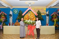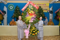 Sau lời phát biểu của Ni trưởng phó trưởng Phân Ban, hội nghị cũng đã đón nhận những lẵng hoa của các ban, ngành gửi đến chúc mừng Hội nghị tổng kết.