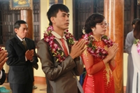 Các Tân lang, tân nương thành tâm cầu nguyện hôn nhân hạnh phúc
