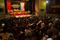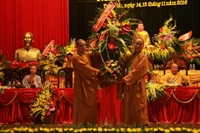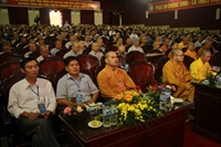 Tiếp đó, ĐĐ.Thích Thiện Trí, UV BTS PG tỉnh, Phó BTS PG huyện Tiền Hải đọc báo cáo tổng kết hoạt động Phật sự nhiệm kỳ V (2012 - 2016) của BTS GHPGVN huyện và thông qua phương hướng hoạt động Phật sự nhiệm kỳ VI (2016 – 2021). Báo cáo nêu rõ: Tập thể BTS PG huyện nhiệm kỳ V gồm 7 thành viên do ĐĐ.Thích Thanh Bản làm Trưởng BTS, chia ra các ban chuyên ngành đã đi vào hoạt động ổn định, thể hiện khả năng, tâm huyết phục vụ công tác Phật sự chung. Toàn huyện hiện có danh số Tăng Ni là 80 vị (09 Tỳ - khiêu; 63 Tỳ - khiêu Ni; 08 Sa – Di; 3 Hình đồng. Trên địa bàn có 45 ngôi chùa/31 xã thị trấn, 38 chùa có Tăng Ni trụ trì hoặc kiêm nhiệm trụ trì; 16 chùa là di tích lịch sử văn hóa; hơn 3 vạn tín đồ Phật tử đã quy y Tam Bảo. Hàng năm, Phật giáo huyện duy trì đều đặn khóa an cư kiết hạ tại trường hạ cơ sở II chùa Nguyệt Quang với tỉ lệ 80 Tăng Ni tham gia, thực hiện đúng giới luật Phật chế, nội quy Tăng sự và chương trình tu học do BTS PG tỉnh đề ra. Về công tác tổ chức giới đàn: BTS huyện cùng các trụ xứ đã xúc dưỡng tiếp độ nhiều thiện nam, tín nữ xuất gia và hoàn thiện hồ sơ thụ giới từ Sa – Di lên Tỳ - khiêu là 3 vị; từ Hình đồng lên Sa – Di là 7 vị. Các Tăng Ni sinh được thụ giới có đủ năng lực, phẩm chất, tinh tiến tu học. Về công tác giáo dục Tăng Ni: BTS PG huyện quan tâm, tạo điều kiện giới thiệu Tăng Ni trẻ dự tuyển vào các Học viện, Cao đẳng, Trung cấp trong cả nước. Hiện nay có 08 Tăng Ni sinh đang theo học các trường Phật học. Về công tác Hoằng pháp - Hướng dẫn Phật tử: hàng tháng, hàng tuần tổ chức được nhiều buổi thuyết giảng tại các chùa giúp các Phật tử nâng cao hiểu biết giáo lý, thực hiện trọn vẹn tinh thần của người con Phật; tổ chức lễ quy y Tam Bảo, các đạo tràng chuyên tu. Về công tác văn hóa: các tự viện duy trì các Đại lễ lớn trong năm như lễ Phật đản, lễ Vu Lan, vía Phật A Di Đà, các đêm liên hoan văn nghệ, giao lưu văn hóa có nhiều khởi sắc, lưu lại dấu ấn trong lòng tín đồ Phật tử và nhân dân địa phương. Về công tác từ thiện xã hội: Tăng Ni Phật giáo huyện nhà luôn thể hiện tấm lòng từ bi của người con Phật, hăng hái tham gia các phong trào thi đua yêu nước do MTTQ huyện phát động, chung tay ủng hộ vì người nghèo, quỹ đền ơn đáp nghĩa, ủng hộ đồng bào lũ lụt với số tiền gần 800 triệu đồng; nấu xôi, cháo phục vụ bệnh nhân nghèo tại các bệnh viện với số tiền gần 200 triệu đồng và 3.934 kg gạo. Về công tác nghi lễ: tổ chức các lễ hội mùa Phật đản, Vu Lan trang nghiêm và trọng thể, thể hiện tinh thần đoàn kết hòa hợp, nghĩa đạo tình đời, tri ân và báo ân. Tăng Ni huyện còn tích cực tham gia phát triển kinh tế, xây dựng chùa cảnh bốn gương mẫu, tu sửa cơ sở thờ tự với số tiền trên 200 tỷ đồng; nhiều chùa ủng hộ địa phương xây dựng nông thôn mới số tiền từ 700 triệu – 1 tỷ đồng. Trong 5 năm đã có 197 lượt chùa đạt danh hiệu “chùa cảnh bốn gương mẫu”; 36 chùa đạt danh hiệu 5 năm liền. Nhiều vị tham gia các cơ quan dân cử, công tác đoàn thể xã hội, được tặng thưởng bằng tuyên dương công đức, bằng khen của các cấp chính quyền.
