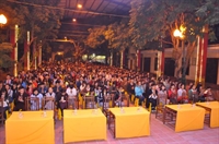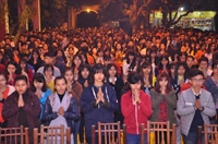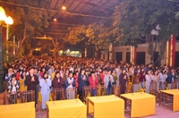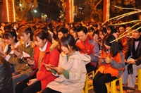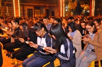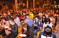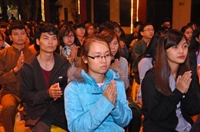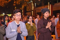 Đúng 19h00 tại lễ đài, dưới sự chủ lễ của Đại đức Thích Thanh Tâm, hơn 600 sinh viên đã cùng thành kính hướng về tôn tượng Đức Bản Sư, tụng thời kinh Vu Lan Báo Hiếu hồi hướng công đức tu tập thiện lành về với Tổ tiên ông bà quá vãng trong nhiều đời nhiều kiếp và cha mẹ hiện tiền.