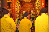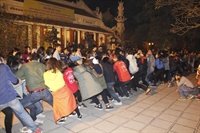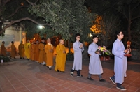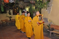 Đến 23h00, các bạn đã cùng nhau vân tập về lại lễ đài, chí thành chí kính thực hiện nghi thức phụng thỉnh Tam Bảo, Tổ tiên đầy trang nghiêm, ý nghĩa do Hòa thượng trụ trì và chư tôn đức Tăng chủ lễ.
