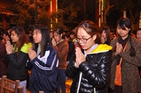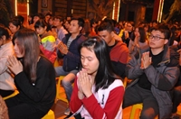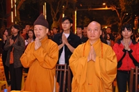 Trong những giờ phút cuối cùng của năm 2016, đại chúng nhất tâm giữ lòng thanh tịnh, hướng về Phật đài, lắng nghe từng tiếng chuông ngân vang trong đêm lặng, để những nỗi muộn phiền dần được buông bỏ, sự an lạc thảnh thơi cứ thế lắng sâu tràn đầy trong tâm thức. Ai ai cũng thầm cầu nguyện những điều tốt đẹp cho riêng mình, hồi hướng về Tổ tiên quá vãng được siêu sinh Tịnh Độ, cha mẹ hiện tiền tăng phúc tăng thọ.