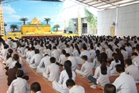 Ngay từ sáng sớm ngày 18/06, các bạn trẻ trong và ngoài tỉnh đã có mặt tại chùa làm thủ tục dự tu, gửi đồ và điện thoại, nhận áo tràng và nhận chúng. Khóa tu đã được cung nghinh Thượng tọa trụ trì Thích Thanh Định quang lâm và chia sẻ về mục đích, ý nghĩa khóa tu và sách tấn tinh thần tu học của các bạn nhỏ; giao lưu cùng thầy Thích Tâm Tiến, chư Tăng chùa Hoằng Pháp (Hóc Môn – TP.Hồ Chí Minh) về ý nghĩa, lợi ích của việc ăn chay. Sau các thời giảng pháp, các bạn trẻ được sống trong không khí sôi động trong các trò chơi, lắng lòng thanh tịnh nhớ về công ơn cha mẹ khi tụng kinh Vu Lan, quây quần sinh hoạt chúng, thảnh thơi khi ngồi tĩnh tọa.