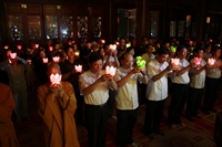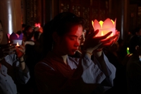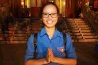 Tới dự và tham gia tình nguyện phục vụ Đại lễ, bạn Đỗ Thị Lý, sinh viên trường Đại học Y Dược Thái Bình cho biết: “Con rất vinh dự và tự hào khi đây là lần thứ được tham dự đêm hoa đăng tưởng niệm đầy ý nghĩa này. Con rất xúc động khi cùng với quý Thầy tụng kinh, niệm Phật và truyền đăng để hồi hướng cho các bà mẹ Việt Nam anh hùng và các liệt sỹ đã hy sinh vì quê hương đất nước. Từ đó con càng cảm thấy trân trọng giá trị của hòa bình, hạnh phúc ngày hôm nay và xin hứa tiếp nối truyền thống của thế hệ đi trước, đóng góp sức trẻ cho quê hương, đất nước”.
