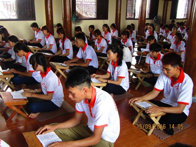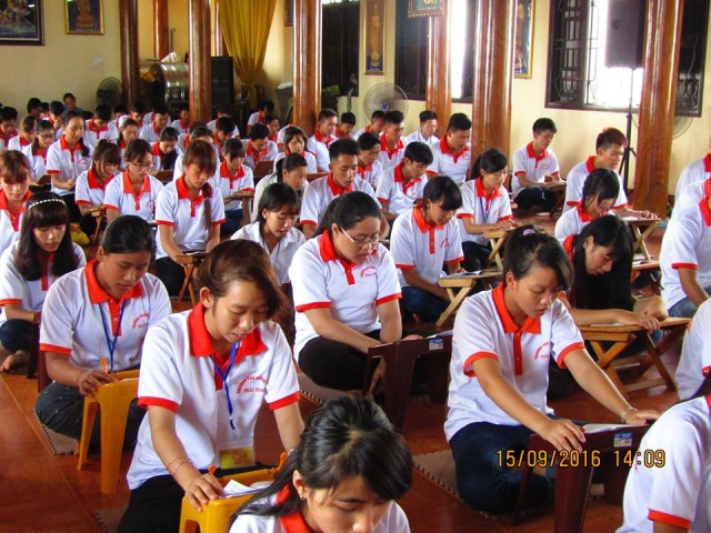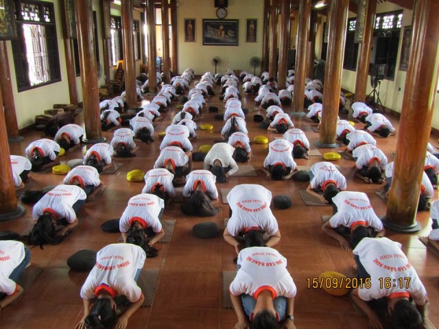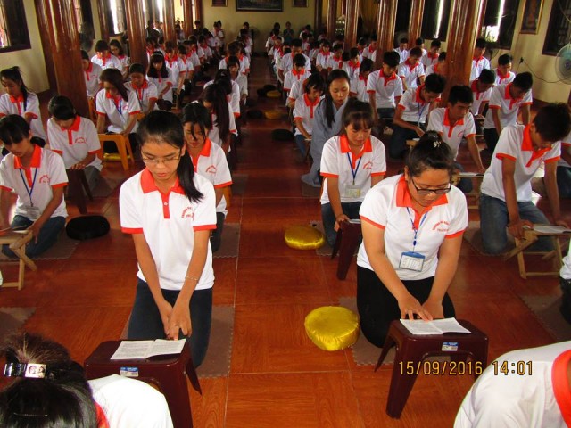 Thời khóa buổi chiều, các bạn đã được tụng kinh Vu Lan, lắng nghe lời Phật dạy về công ơn sinh thành của cha mẹ và bổn phận của người làm con; nghe qúy Thầy giải đáp một số thắc mắc, chia sẻ phương pháp tu tập, xây dựng đời sống đạo đức. Khóa tu kết thúc lúc 16h00 cùng ngày.