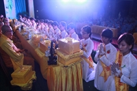 Các bạn trẻ chùa Từ Xuyên dâng phẩm vật cúng dàng chư tôn đức