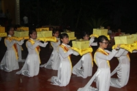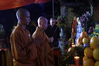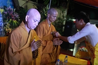 Tiếp sau đó, noi theo tấm gương hiếu của Ngài Mục Kiền Liên, các bạn thanh niên Phật tử đã thay mặt đại chúng thành kính dâng pháp y cúng dường hiện tiền chư tôn thiền đức. Đạo từ cho buổi lễ, Thượng tọa Thích Thanh Định, trụ trì chùa Từ Xuyên đã thay mặt chư Tăng hiện diện tán thán tinh thần hiếu tâm hiếu hạnh của toàn thể quý Phật tử và hứa khả nạp thọ phẩm vật cúng dường. Thượng tọa cũng đã có đôi lời khuyến tấn đại chúng cần làm tròn hiếu đạo của người con Phật để mỗi ngày đều là ngày lễ Vu Lan – Báo hiếu.