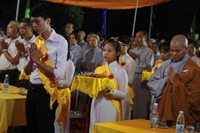 Sau nghi thức niêm hương bạch Phật, dâng lục cúng dàng, Phật tử Nguyễn Lan đã diễn đọc về ý nghĩa cài hoa hồng trong niềm xúc động của mọi người. Giờ đây, những hình ảnh thân thương của mẹ cha đã được tái hiện lại trong từng dòng chữ, từng câu thơ,… Sự nhọc nhằn vất vả, nuôi nấng, dạy bảo,… khiến cho người nghe không khỏi chạnh lòng mà sa hai hàng lệ. Trong giờ phút thiêng liêng ấy, toàn thể đạo tràng đã dành một phút mặc niệm để tưởng nhớ về thâm ân to lớn của chư Phật, công ơn giáo dưỡng muôn một của thầy tổ bổn sư, các vị thánh tử đạo đã quên mình vì đạo pháp. Bên cạnh đó cũng là tưởng nhớ đến ơn đất nước đồng bào, ơn chúng sanh vạn loại, liệt vị tiền bối hữu công, chân linh cửu huyền thất tổ, cha mẹ nhiều đời nhiều kiếp.