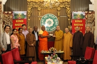 Đón tiếp phái đoàn có HT.Thích Thanh Nhiễu, Phó Chủ tịch Thường trực HĐTS T.Ư GHPGVN; HT.Thích Bảo Nghiêm, Phó Chủ tịch HĐTS GHPGVN, Trưởng ban Hoằng pháp T.Ư, Trưởng BTS GHPGVN TP.Hà Nội; TT.Thích Đức Thiện, Tổng Thư ký HĐTS GHPGVN cùng chư tôn đức trong HĐTS đã thân mật tiếp đoàn.
