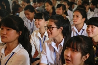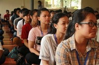 Các bạn trẻ chăm chú lắng nghe chia sẻ của quý Thầy