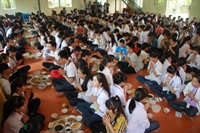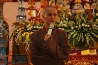 Ngay sau lễ khai mạc, ĐĐ.Thích Đạo Duyệt đã quang lâm giảng đường và có thời pháp thoại với chủ đề “Tác hại của cờ bạc”. Thông qua câu chuyện về mùa Euro vừa qua, quý Thầy đã chỉ rõ nguyên nhân, tác hại của thói quen cá độ, đánh bài bạc, lô đề đang xảy ra trong giới trẻ hiện nay. Từ đó, quý Thầy mong muốn rằng các bạn trẻ cần tin nhân quả, làm lành được phước để có cuộc sống lương thiện, làm giàu chân chính.