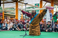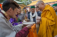 lưu vong (Sikyong), cầm bức tranh Tôn giả chiêm ngưỡng, và quan khách