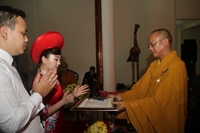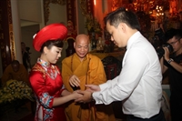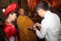 Chiều cùng ngày, Thượng tọa trụ trì chùa Từ Xuyên (P.Hoàng Diệu, TP.Thái Bình) đã hoan hỷ tổ chức lễ hằng thuận cho đôi bạn trẻ: Đinh Trọng Thưởng (pháp danh Từ Thương) và Bùi Thị Huyền (pháp danh Từ Ngọc).