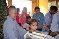 Hương đã phát 150 phần quà cho học sinh và bà con còn khó khăn.