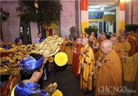Đoàn rước tôn tượng Đức Phật vào cổng Việt Nam Quốc Tự