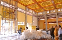 Theo đó, công tác dọn dẹp mặt bằng, hội trường, nội điện Việt Nam Quốc Tự, thiết trí… đã chuẩn bị tương đối, sẵn sàng cho các buổi lễ sắp tới. Dự kiến, các khâu chuẩn bị sẽ hoàn tất vào trưa mai, 10-1.