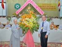 Sau lời phát biểu của Ni trưởng Quyền trưởng Phân Ban, hội nghị cũng đã đón nhận những lẵng hoa của các ban, ngành gửi đến chúc mừng Hội nghị.