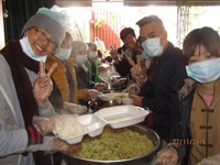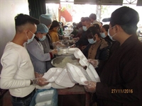 Với tinh thần chuẩn bị hăng say, nhiệt tình, các bạn đã phân công chế biến món và đóng thành các hộp cơm. Sau đó, đạo tràng đã tổ chức di chuyển sang bệnh viện, hỏi thăm các bác sỹ, cán bộ công nhân viên, động viên các bệnh nhân và gia đình vượt qua khó khăn trong cuộc sống. Mỗi suất cơm tuy giản đơn nhưng là tấm lòng của những Phật tử trẻ hướng tới các hoàn cảnh còn nhiều khó khăn, thể hiện tinh thần từ bi – bác ái của đạo Phật.