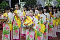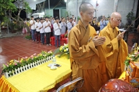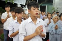 Toàn thể đại chúng vô cùng xúc động khi nghe bạn Ngọc Anh diễn đọc ý nghĩa cài hoa hồng và hoài niệm về những ngày thơ bé bên cha mẹ. Sau đó, các bạn trẻ đã cài hoa hồng kính dâng chư tôn đức, tặng quý vị khách quý cùng nhân dân Phật tử trong niềm cảm thương dâng trào về người cha, người mẹ khả kính.