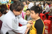 TT.Thích Thanh Định, Phó ban Thường trực BTS PG tỉnh Thái Bình cùng chư Tăng chùa Từ Xuyên chứng minh buổi lễ cùng đông đảo Phật tử, bà con nhân dân trong và ngoài thôn về dự lễ.