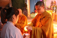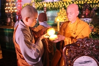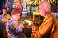 trì Thích Thanh Định đã đón nhận ánh sáng từ bàn thờ Phật, cử hành nghi thức