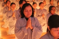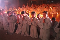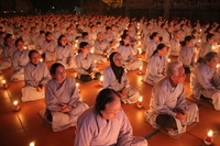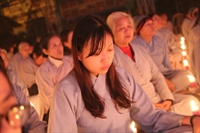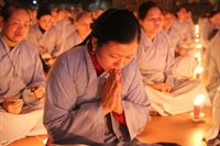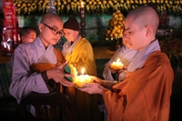 đêm hoa đăng cầu nguyện. Trong không khí trang nghiêm trầm mặc, Thượng tọa trụ