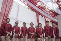 Hình: Các thành viên của dàn hợp xướng với các giáo viên và học sinh tại