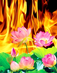 Ngay đó, ngay nơi lửa cháy đó là điều kiện để Sen kia muôn đời vô minh lại tìm về với chính bản thể của nó. Sức mạnh trong Sen đã khởi phát. Sen nở như Sen đùa giỡn, cười cợt thách thức với Lửa. Lửa càng cháy Sen càng phát sáng nở rộ hơn.