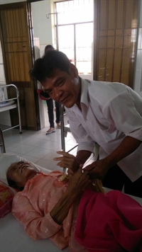 Bà Hai và anh Thạch Hưởng ở Bệnh viện Đa khoa Cà Mau.
