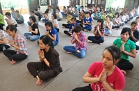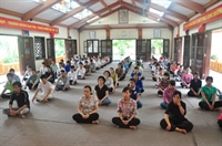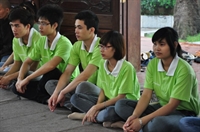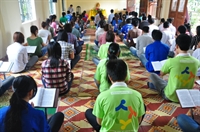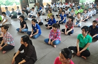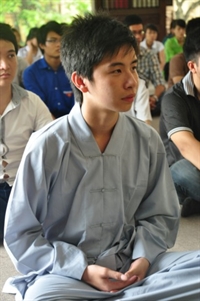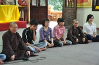 Tiếp theo, các bạn đã cùng vân tập về giảng đường, cùng thực tập phương pháp tọa thiền do Đại đức Thích Pháp Minh hướng dẫn.