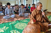 Đầu giờ chiều là thời khóa tụng kinh Dược Sư cầu nguyện quốc thái dân an do Đại đức Thích Thuần Tại hướng dẫn.