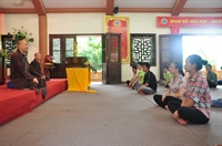 Mở đầu ngày tu là chương trình giao lưu, gặp mặt của Hòa thượng trụ trì