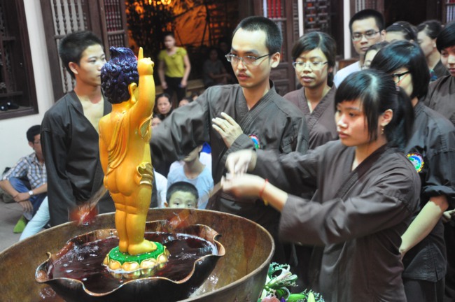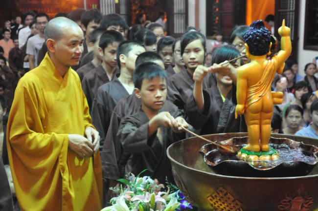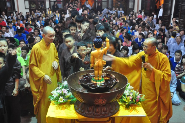 làm lễ Phật đản và thực hiện nghi thức tắm Phật, vì lễ Phật đản tháng