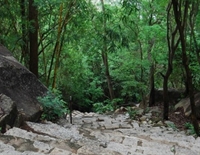 | Con đường dẫn lên đỉnh núi chỉ có vài đoạn được lát đá, còn lại phải luồn lách, băng trong rừng, theo lối mòn. |