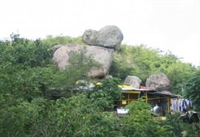 Cốc của sư Thủy đang ngự nằm khuất dưới dãy đá.