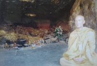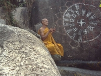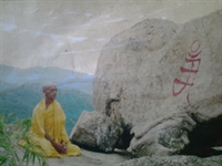 Sư thầy Thích Minh Thủy ngồi thiền bên vách đá gần cốc