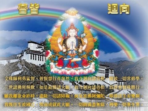 Dường như người thanh niên bất diệt, hiền lành, ngồi khoanh chân trên hoa sen thanh tịnh với bàn tay phải dơ lên như khuyên nhủ như trả lời: "Nếu con muốn thoát khỏi sự đau khổ và sợ hãi, con hãy luyện tập trí tuệ và từ bi". [Anatole France]