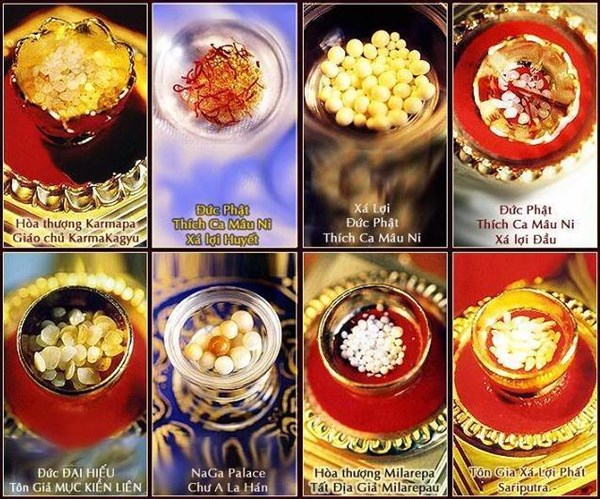 Một số dạng tinh thể được cho là xá lợi của đức Phật và các vị cao tăng sau khi viên tịch